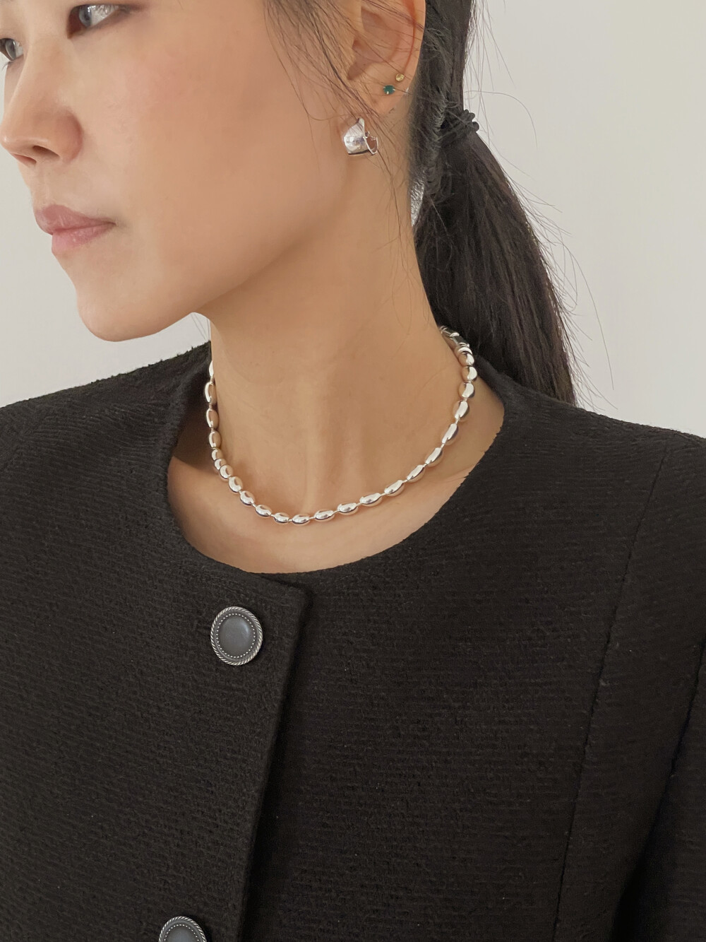 베리로지의 스테링실버 네크리스가 목선의 아름다움을 더욱 돋보이게 연출해드립니다.